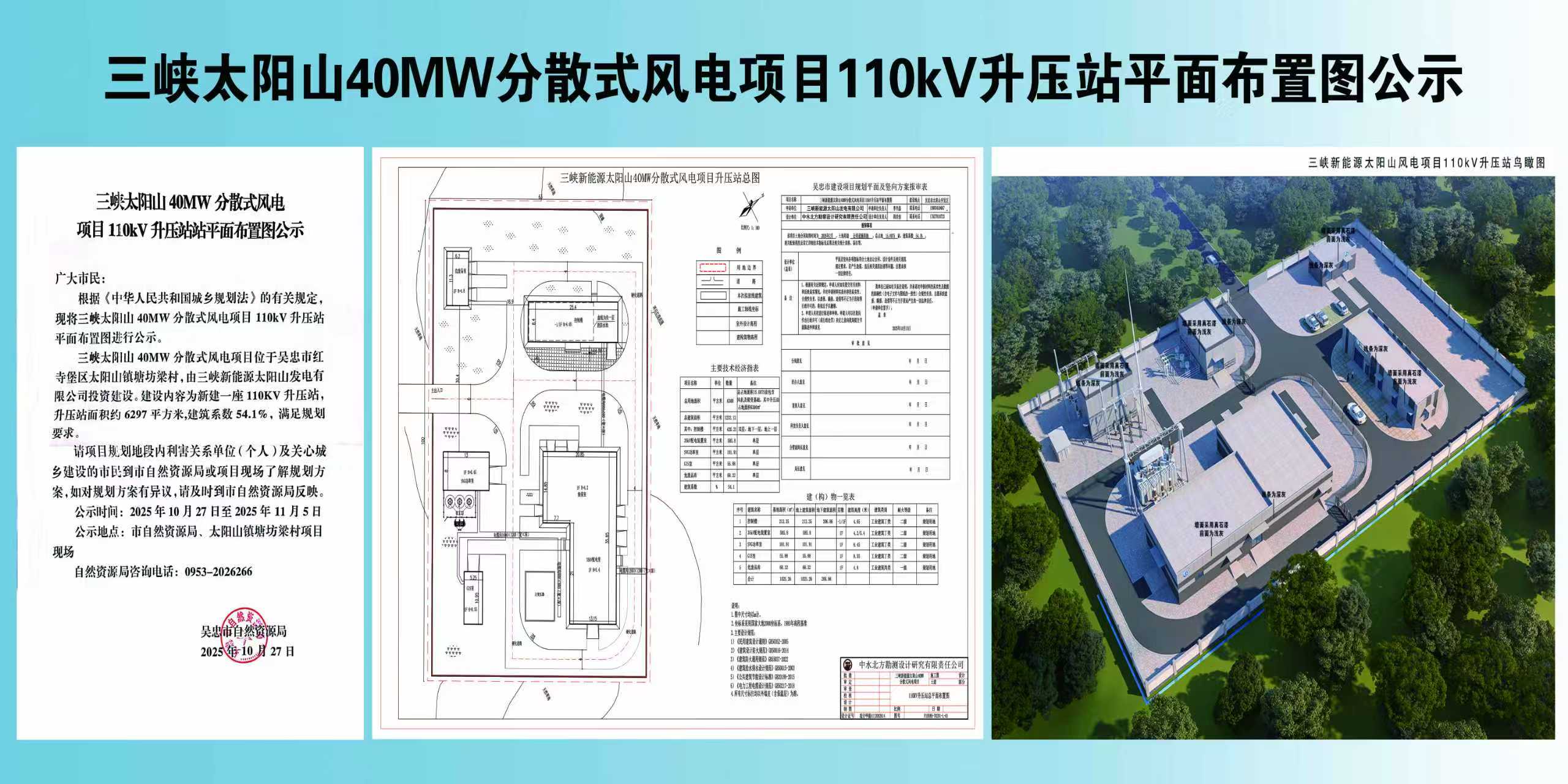 三峡太阳山40MW分散式风电项目110kV升压站平面布置图公示