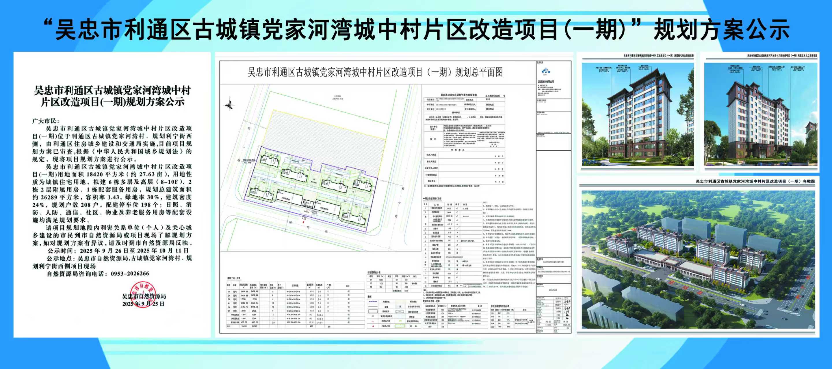 吴忠市利通区古城镇党家河湾城中村片区改造项目(一期)规划方案公示