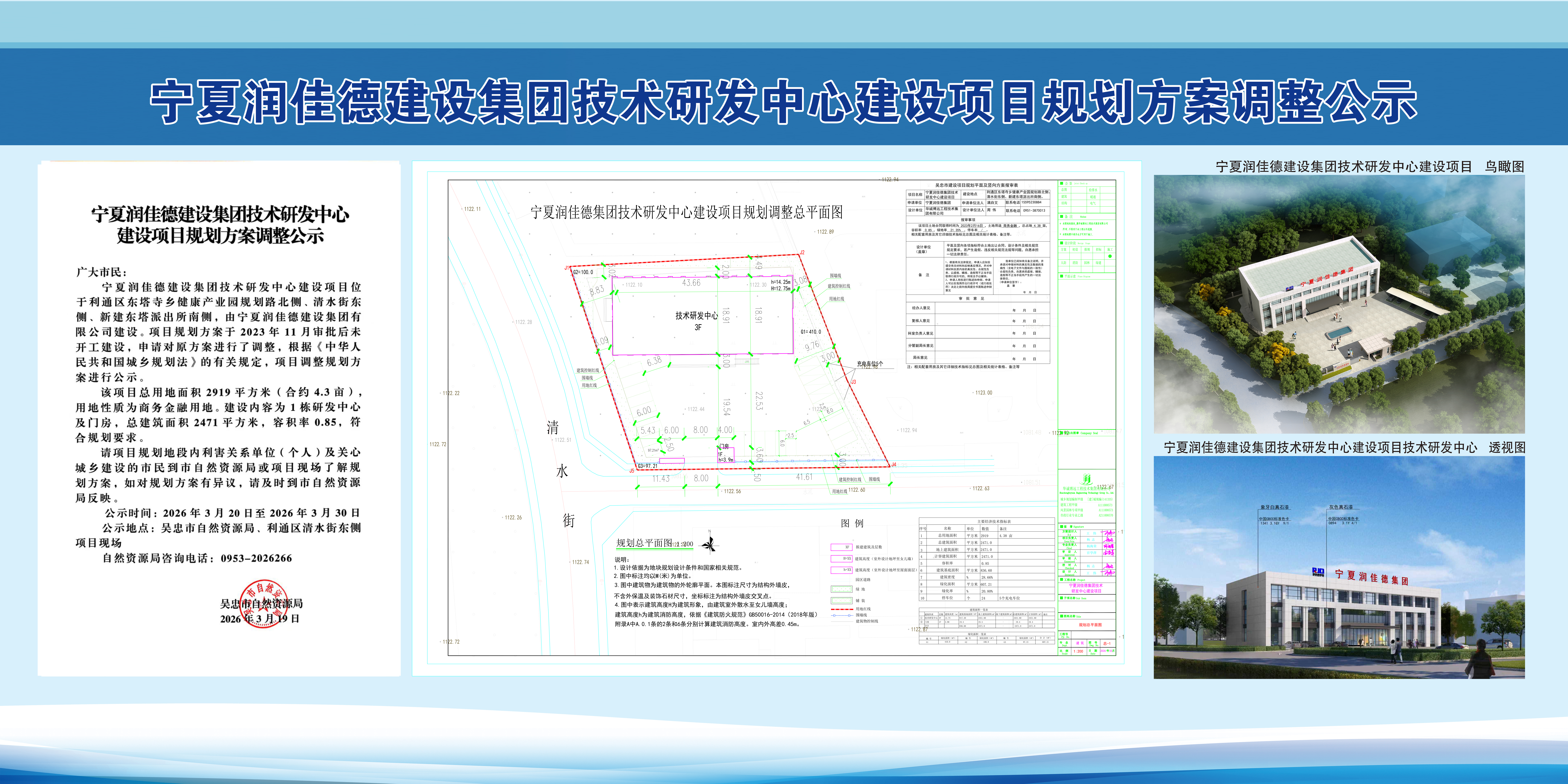 宁夏润佳德建设集团技术研发中心建设项目规划方案调整公示