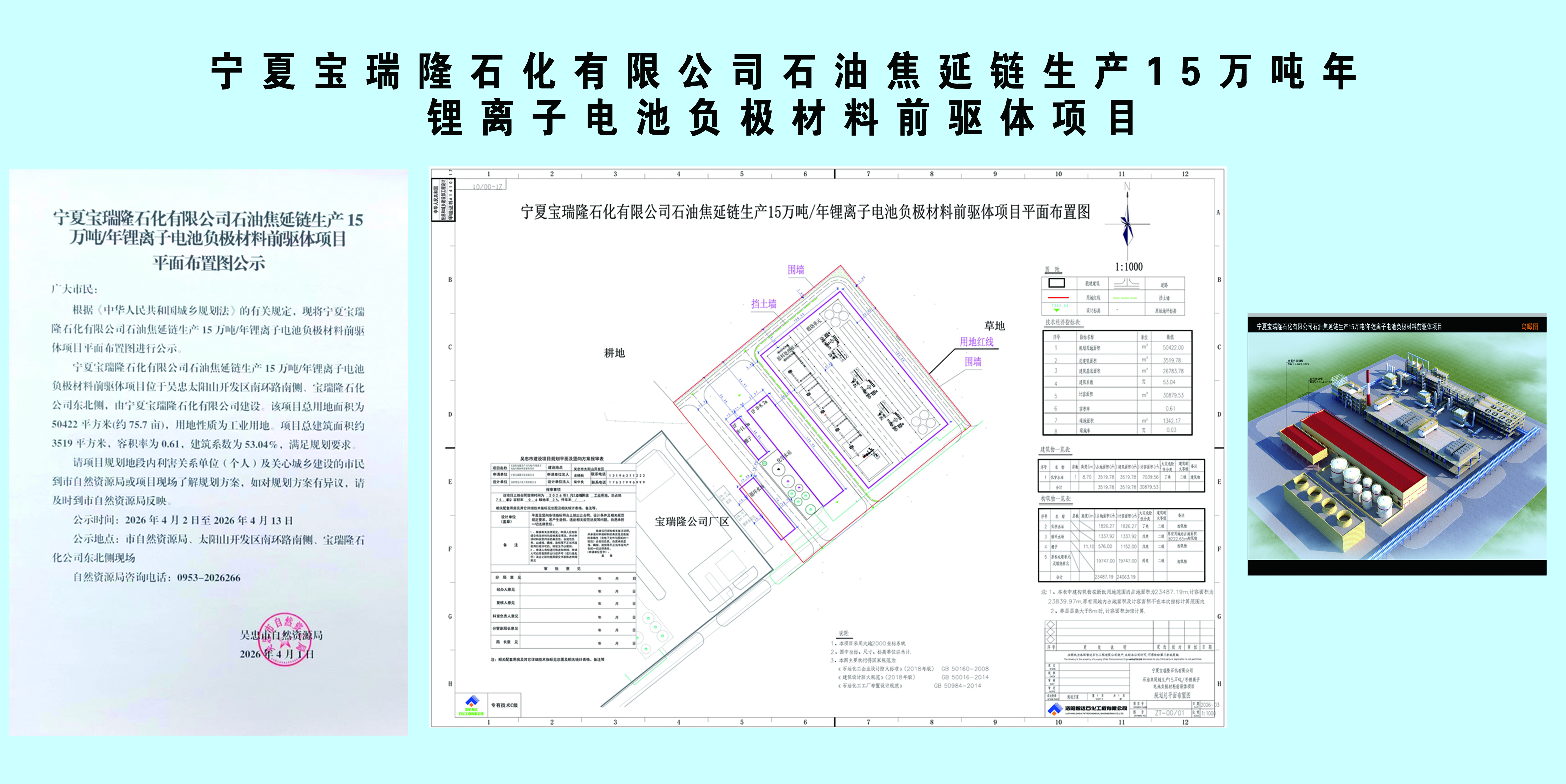 宁夏宝瑞隆石化有限公司石油焦延链生产15万吨/年锂离子电池负极材料前驱体项目平面布置图公示