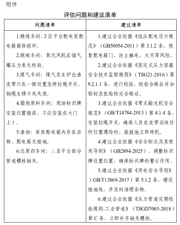 在评估过程中,评估组发现企业还存在一些安全管理方面的不足,并提出相应建议,详见附件。