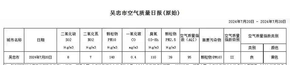 2024年7月20日吴忠市空气质量日报