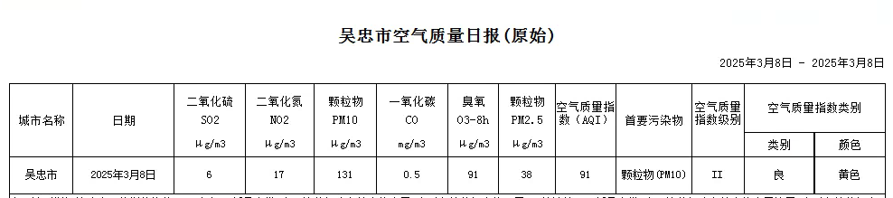 2025年3月8日吴忠市空气质量日报