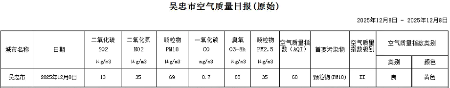 2025年12月8日吴忠市空气质量日报