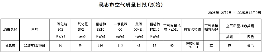 2025年12月9日吴忠市空气质量日报