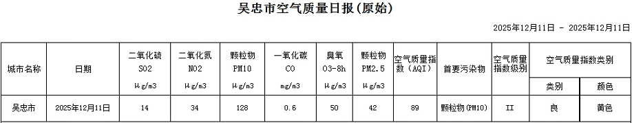 2025年12月11日吴忠市空气质量日报