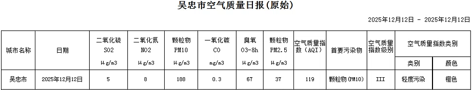 2025年12月12日吴忠市空气质量日报
