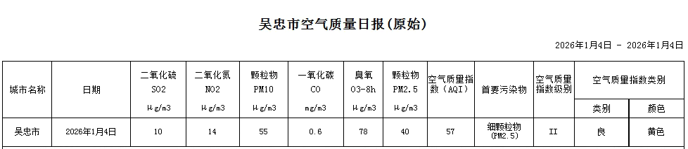 2026年1月4日吴忠市空气质量日报