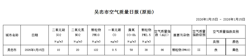 2026年1月15日吴忠市空气质量日报
