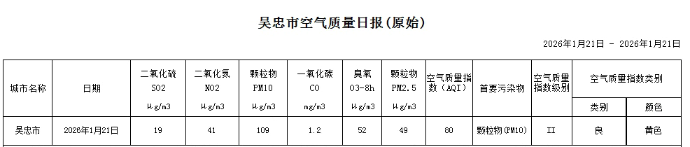 2026年1月21日吴忠市空气质量日报