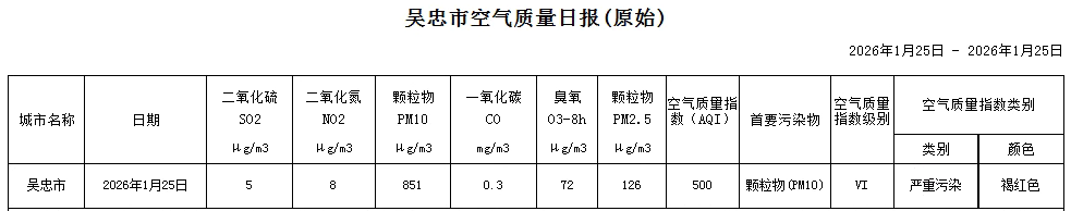 2026年1月25日吴忠市空气质量日报