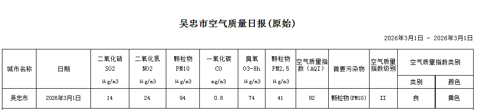 2026年3月1日吴忠市空气质量日报