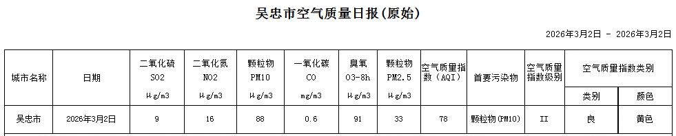 2026年3月2日吴忠市空气质量日报