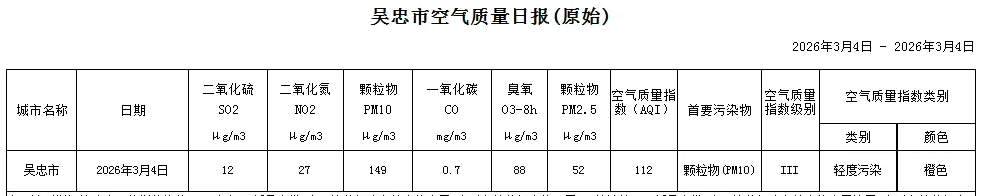 2026年3月4日吴忠市空气质量日报