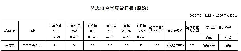 2026年3月22日吴忠市空气质量日报