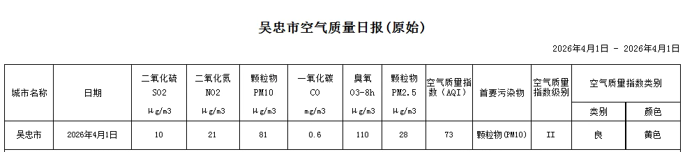 2026年4月1日吴忠市空气质量日报