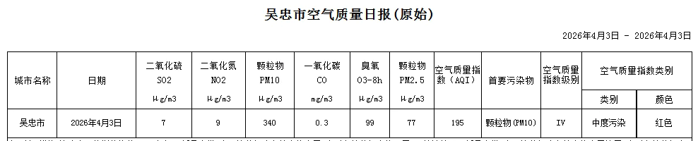2026年4月3日吴忠市空气质量日报