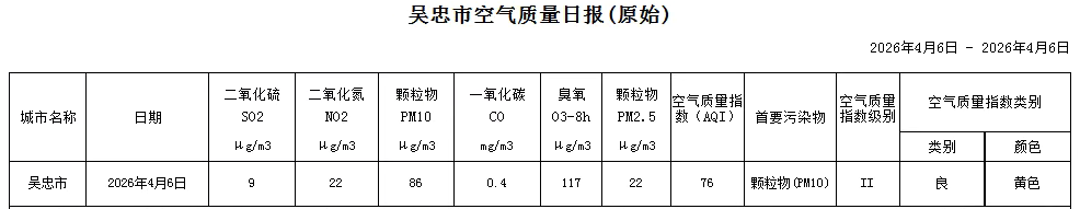 2026年4月6日吴忠市空气质量日报