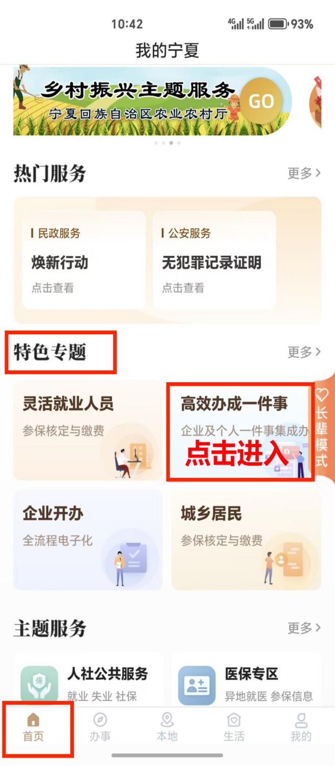2.进入专区,点击首页“特色专题”下的“高效办成一件事”。