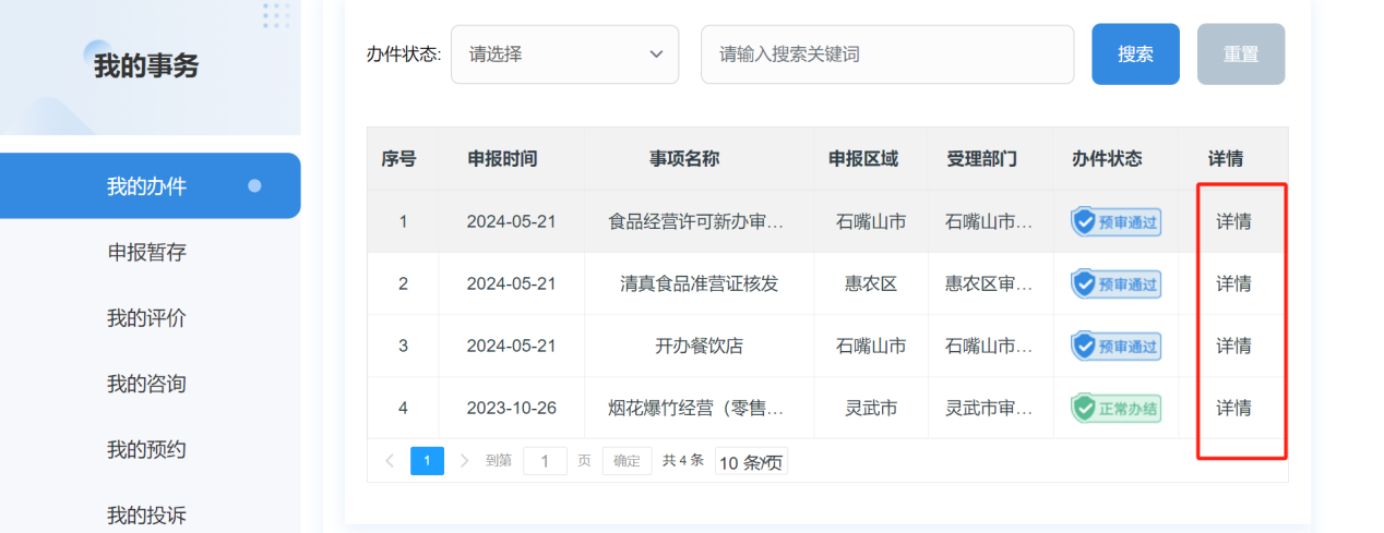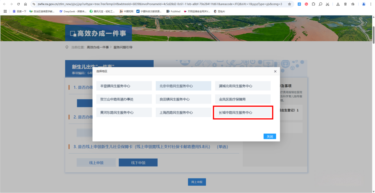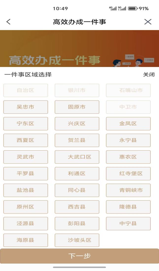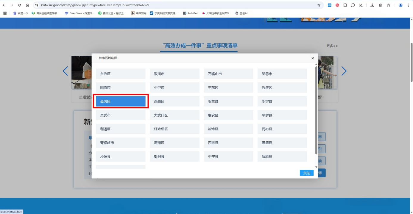 3.点击选择申请办事的地区(此处以金凤区为例)