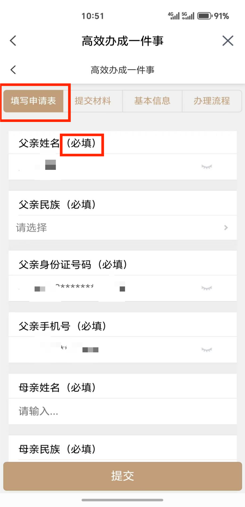 7.按照实际逐项填写信息,只需填写标注为“必填”项,填写完毕后点击“提交”。