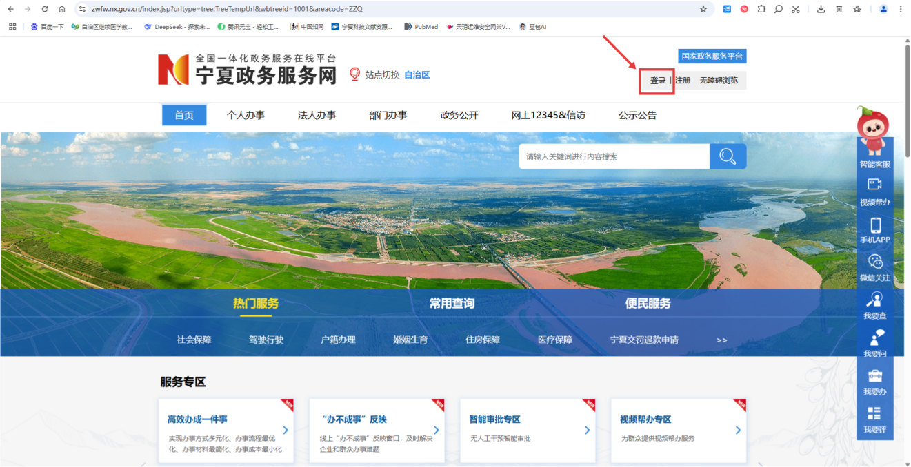 1.在浏览器地址栏输入https://zwfw.nx.gov.cn/
