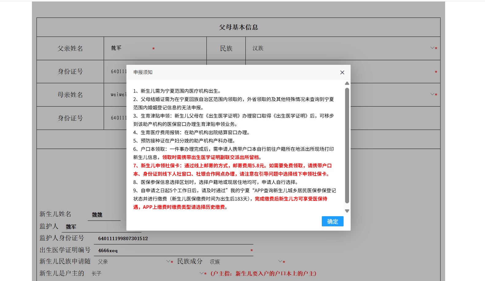 注意:若父亲为《出生医学证明》持证人的,登录父亲账号进行申请,母亲为《出生医学证明》持证人的,登录母亲账号进行申请。