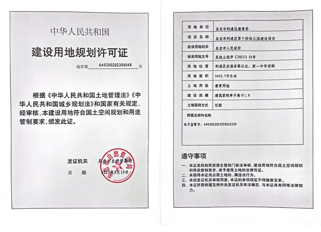 吴忠市利通区第十四幼儿园建设项目建设用地规划许可证