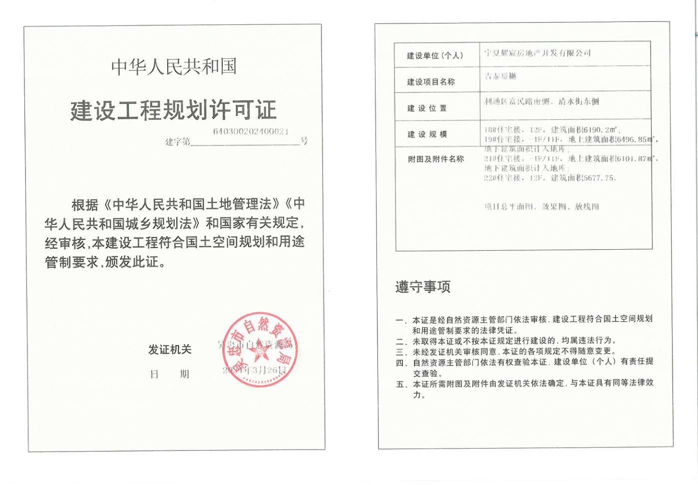 宁夏耀宸房地产开发有限公司吉泰璟樾建设工程规划许可证