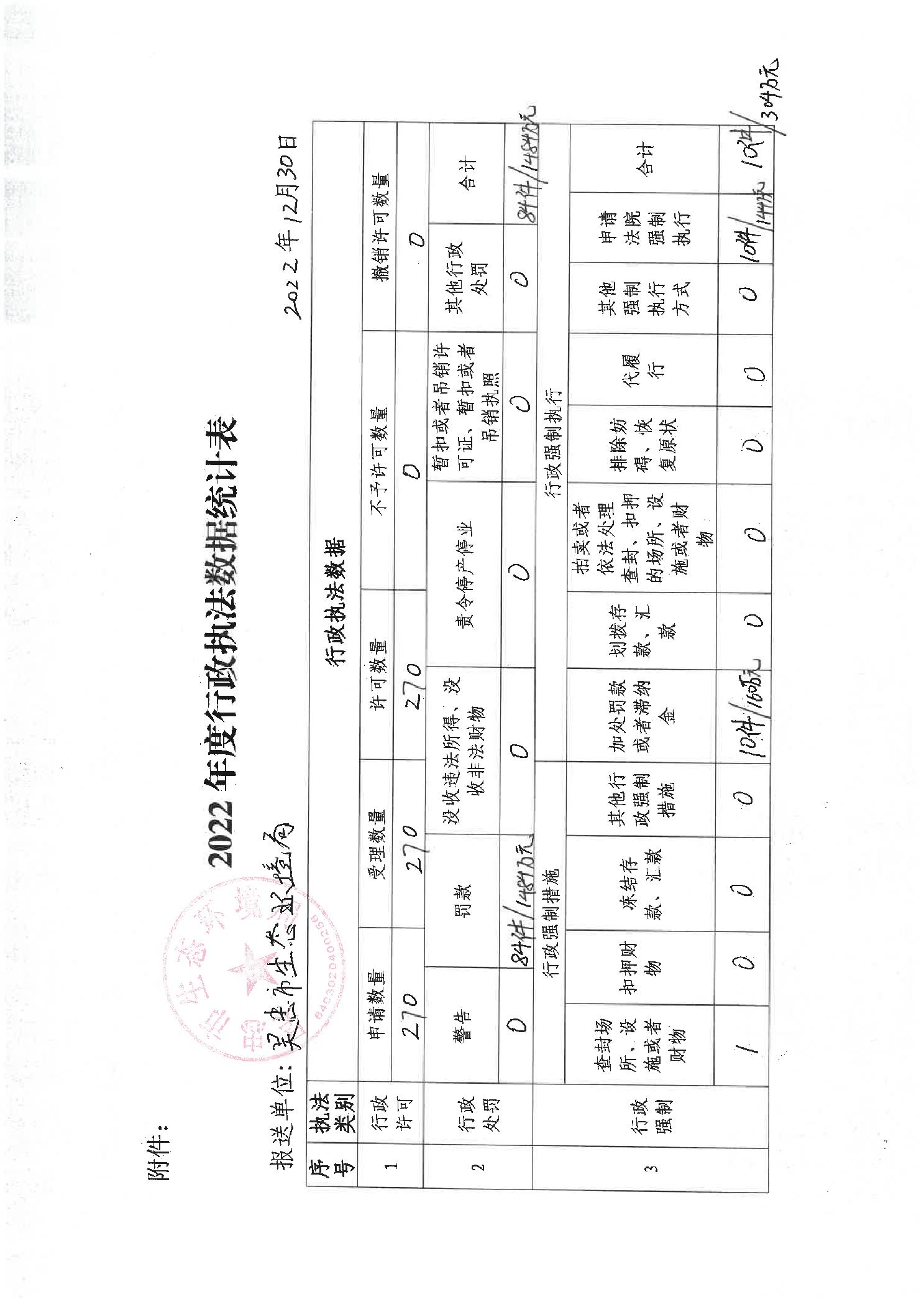 2022年度行政执法数据统计表